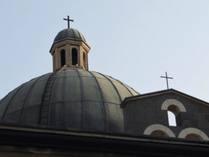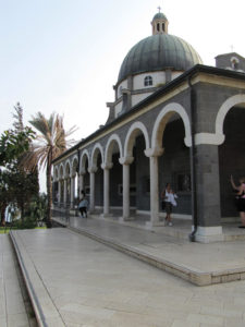 The present Church of the Beatitudes was built in 1938 and harks back to the golden era of Byzantine architecture. It is built in an octagonal shape to represent the eight beatitudes, has a marble veneer and there’s a gold mosaic in the dome. In 1984 a mosaic floor was designed and installed by Italian Vasco Nasorri.